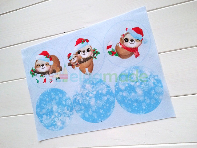 Фетр з принтом ЛІНИВЦІ І СНІЖИНКИ, 22x30 см, корейський м'який 1.2 мм